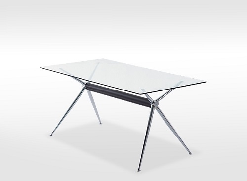 天板/強化ガラス(クリア) 脚/クロームメッキ リサイクルレザー(ダークブラウン)