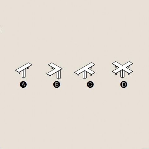 (A) 連結 (B) L字 (C) T字 (D) 十字