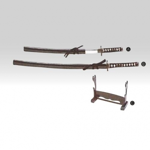 (A)脇差小刀全長 620 (B)脇差大刀全長 890 (C)刀掛け W410 x H320
