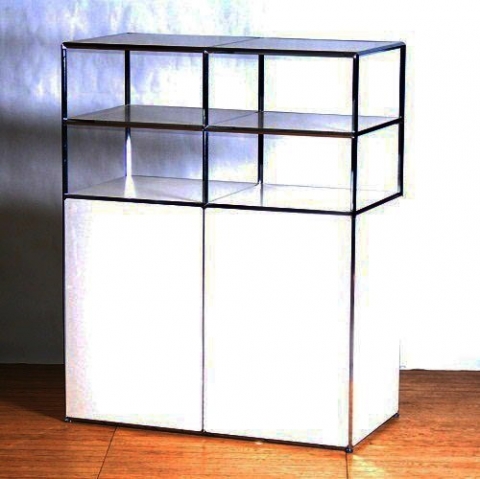 フレーム:クロームメッキ(角パイプ) 天板・側板:デコラ(アクリル乳半可) ※照明別途