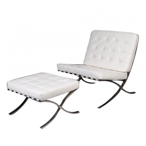 (A)バルセロナチェア(ホワイト) (B)バルセロナオットマン(ホワイト)