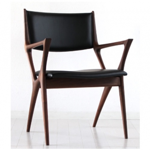 素材/ウォールナット材 張地/レザー(ブラック)