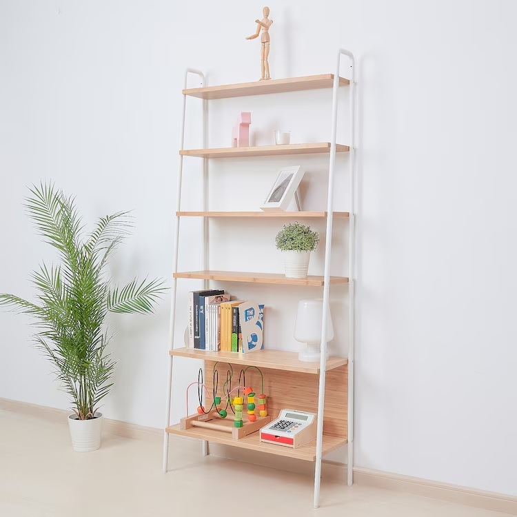 シェルフラック(スヴェナムル) 品番:WL-4198CODE:41981005レンタル料:6500サイズ:W800 X D300 X H1800商品仕様・カラー:脚/竹(ナチュラル) 枠/スチール(ホワイト) 商品のお問い合わせ
