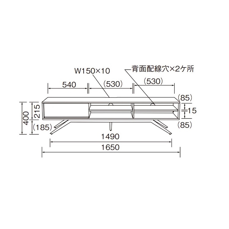 テレビボード 品番:WL-4194CODE:41942041レンタル料:18000サイズ:W1650 x D400 x H400商品仕様・カラー:材質/繊維板(大理石紙貼り、鏡面仕上げ) 脚/スチール 商品のお問い合わせ