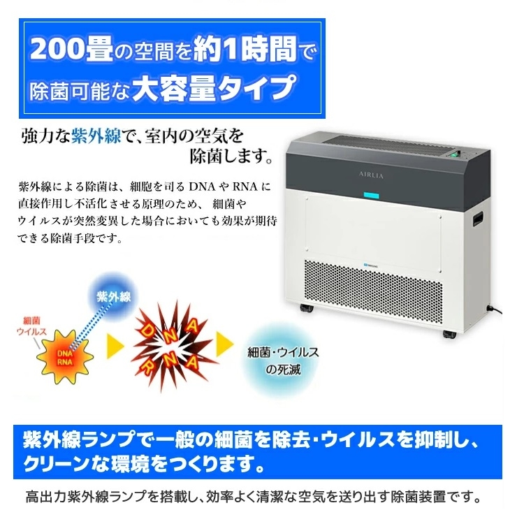 空気循環式紫外線洗浄機(エアーリアパワー)400畳 光の力で菌・ウイルスを除去