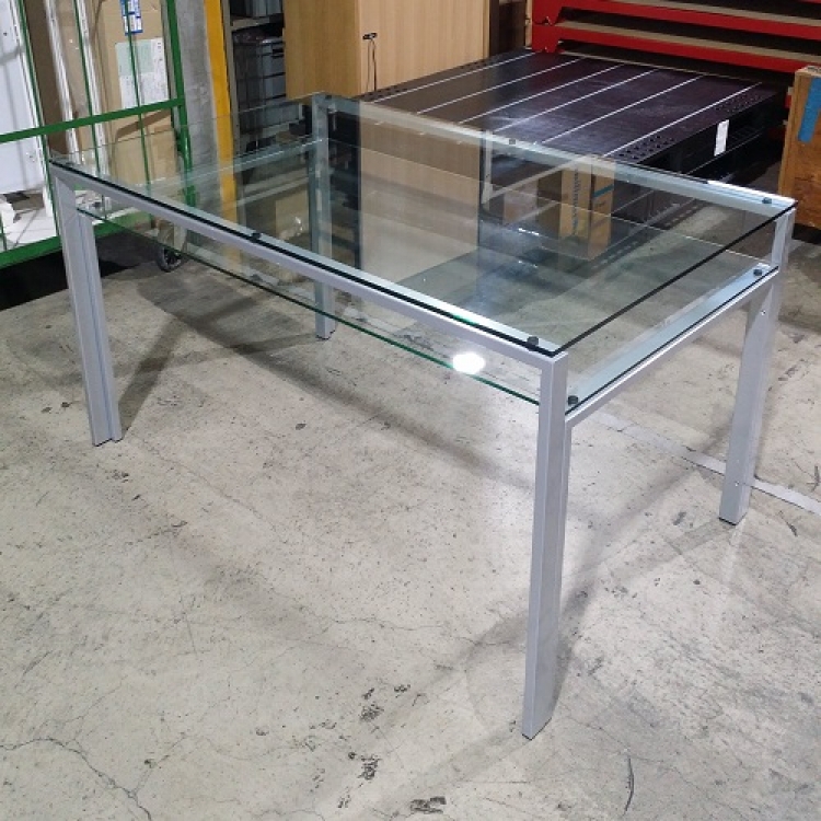 フレーム/スチール(シルバー紛体塗装)天板/透明ガラス10mm 棚板/透明ガラス8mm