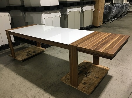 ダイニングテーブル(ヒュルスター) 品番:WL-944CODE:9442045レンタル料:70000サイズ:W2100(W2600) x D900 x H750商品仕様・カラー:天板/ガラス(ホワイト) フレーム/ウォールナット東京営業所の在庫になります。 商品のお問い合わせ