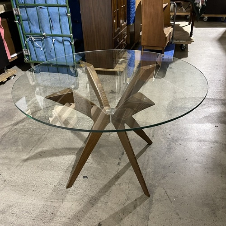 ダイニングテーブル(トーキョー) 品番:WL-2248CODE:22482003レンタル料:39000サイズ:φ1200 x H750商品仕様・カラー:天板/強化ガラス 脚部/ビーチ(ウォールナット) 商品のお問い合わせ