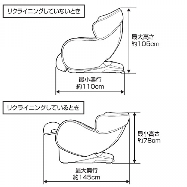 リクライニング時/W700 x D1450 x H780