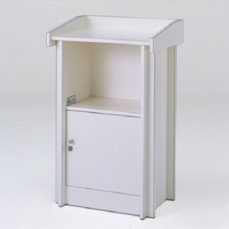 スタンドカウンター 品番:EC-036CODE:1962001レンタル料:12000サイズ:W600 x D450 x H975 (天板900) 中棚/W400 x D300商品仕様・カラー:天板/メラミン(ホワイト)仕様/下部ストック扉鍵付 商品のお問い合わせ
