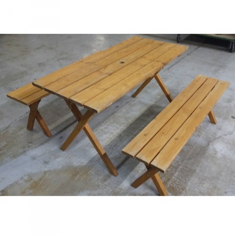 ガーデンベンチセット 品番:SG-504CODE:5041008レンタル料:10000サイズ:テーブル:W1200 x D600 x H650 ベンチ:W1200 x D250 x H410パラソル穴径Φ40mm ※折り畳み出来ません 商品のお問い合わせ
