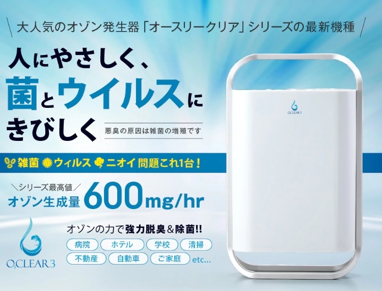オゾン発生器(オースリークリア3)オゾンの力で菌・ウィルスを除去