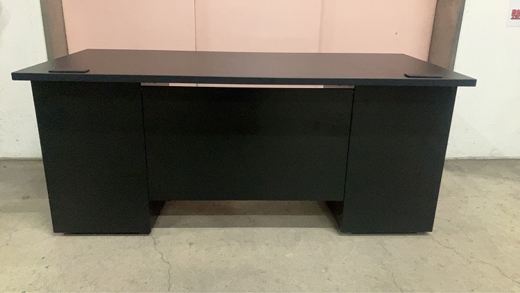 エグゼクティブデスク 品番:O-1079CODE:10791002レンタル料:26000サイズ:W1600 x D700 x H700 天板厚み/25mm商品仕様・カラー:天板/メラミン化粧板(ブラック) 本体/スチール(ブラック)両袖机 商品のお問い合わせ